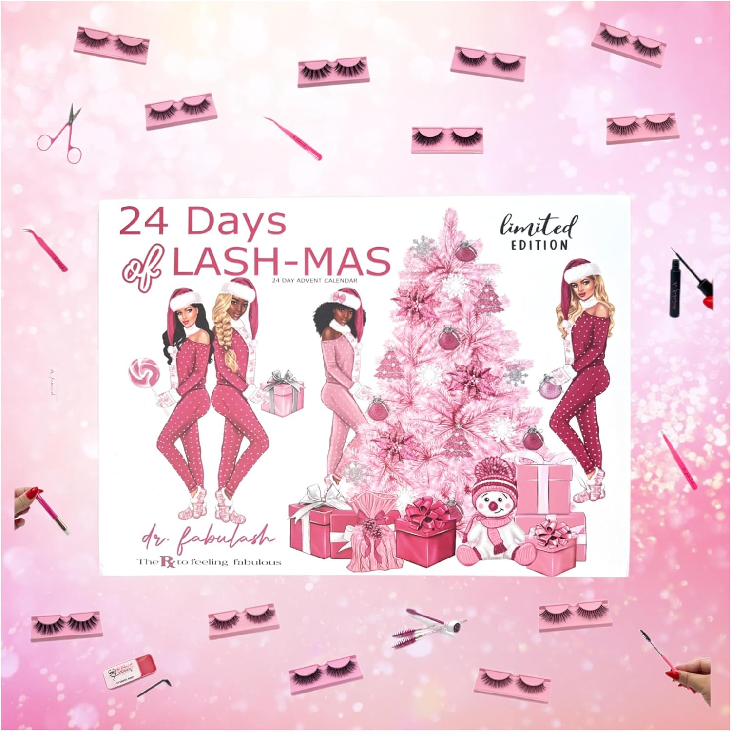 The Perfect Gift! The 24-Day Lash-Mas Advent Calendar for any glam-aholic! 12 different faux mink eyelashes from the Lets Go Party Collection. The collection also includes; tweezers, scirssors, black adhesive, white adhesive, spoolies, and much much more! Perfect gift to give or get!