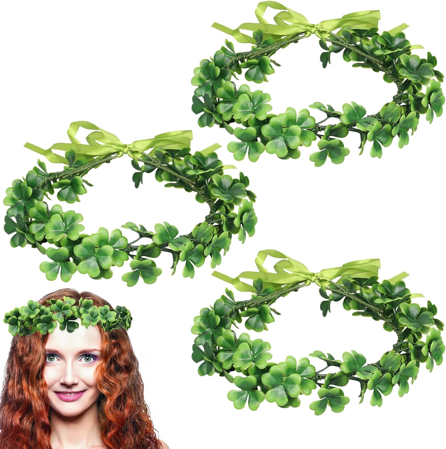 3 Pieces St. Patrick's Day Shamrock Headbands, Irish St. Patrick's Day Accessories Green Clover Garland, Fairy Tale Elf Portrait Accessories